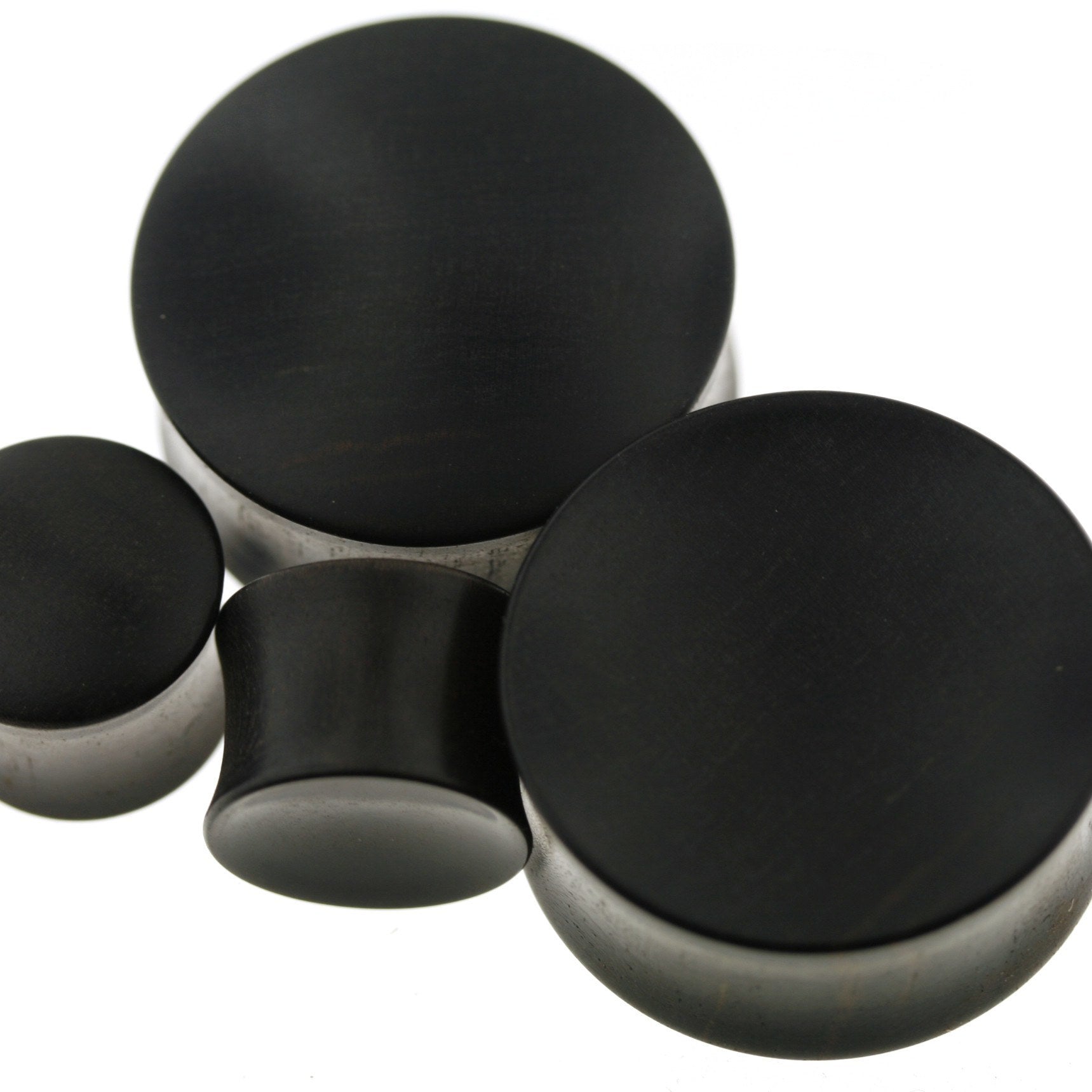 Double flared plugs carved from Ebony with one convex face and one concave face.